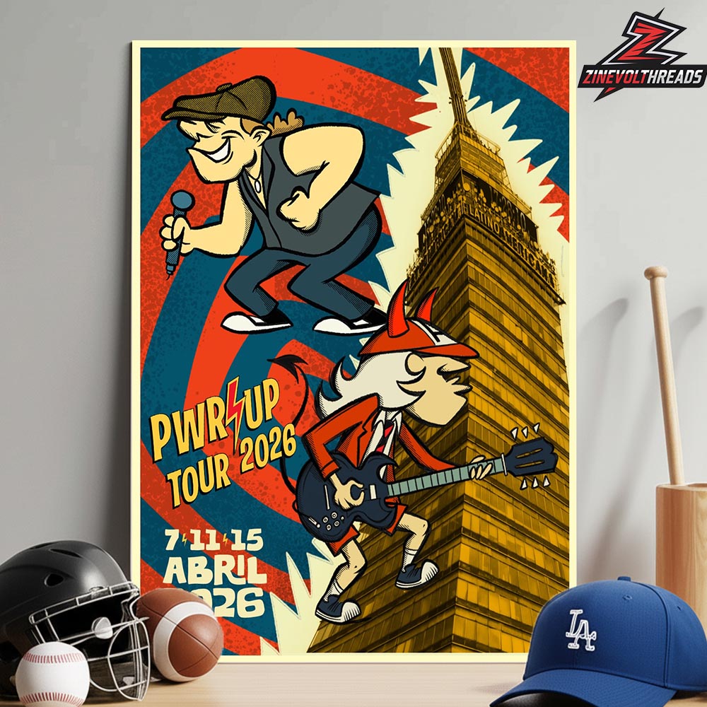 Turn your space into a high-voltage tribute with this bold AC/DC PWR UP Tour 2026 Mexico poster canvas, celebrating three explosive nights on April 7th, 11th, and 15th. Featuring a vibrant, comic-style design with electrified characters rocking out beside a towering city landmark, this artwork captures the raw intensity, attitude, and unmistakable spirit of AC/DC. The striking colors and dynamic composition make it a standout piece for any fan of legendary rock.