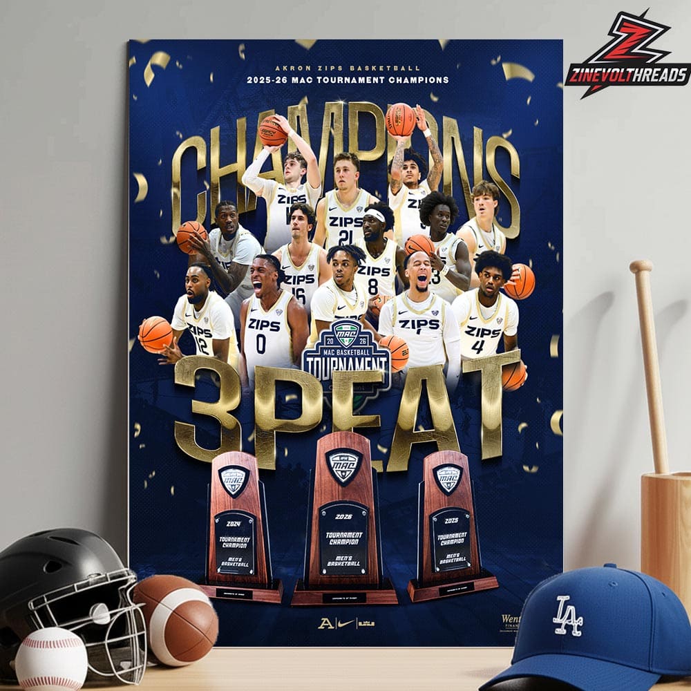 Akron Zips 2026 MAC Men’s Basketball Tournament Champions 3 Peat MAC Champions Home Decor Poster Canvas