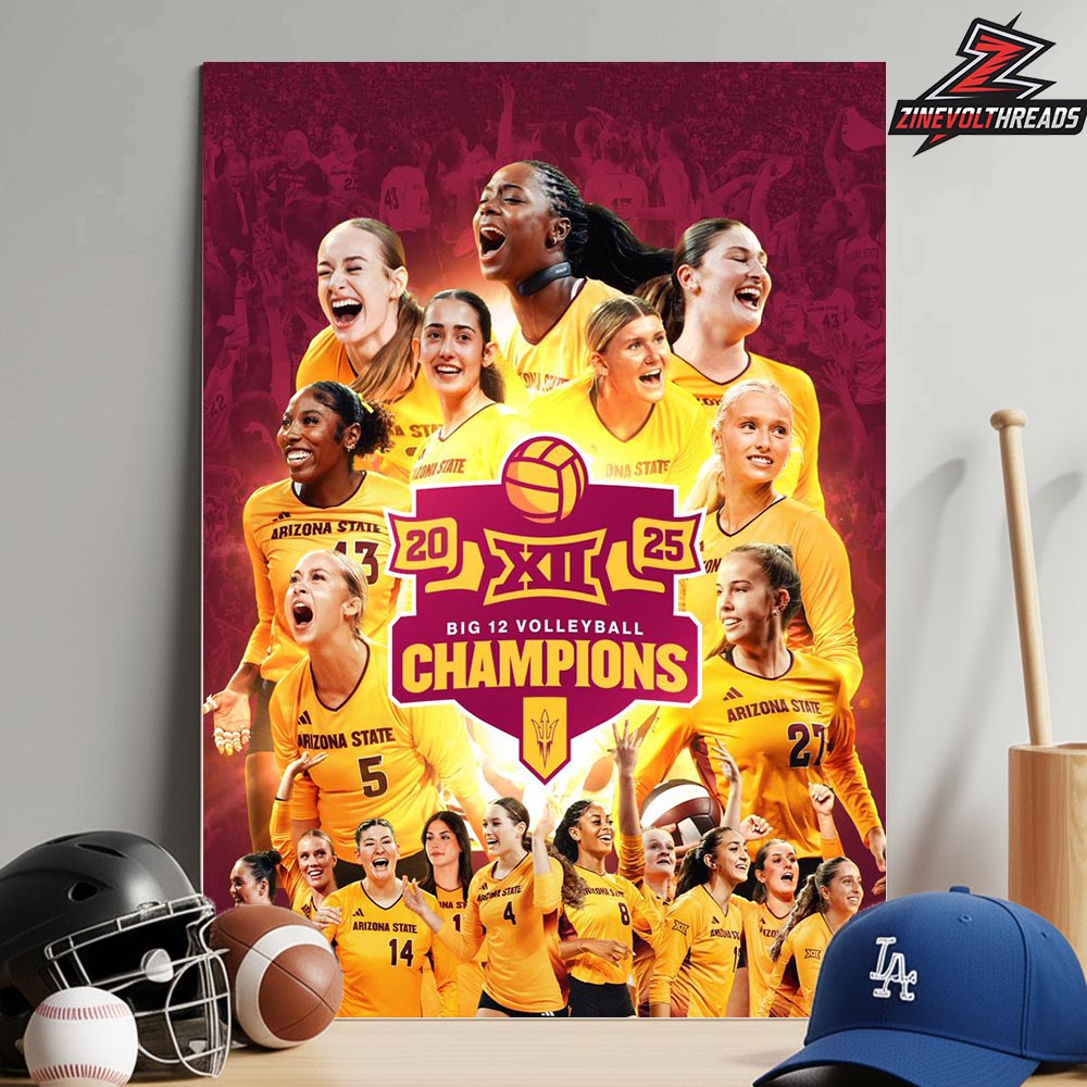 Product Highlights: Wall Art Featuring Arizona State Sun Devil Is The Big 12 2025 Women's Volleyball Champions Back To Back NCAA Home Decor Poster Canvas