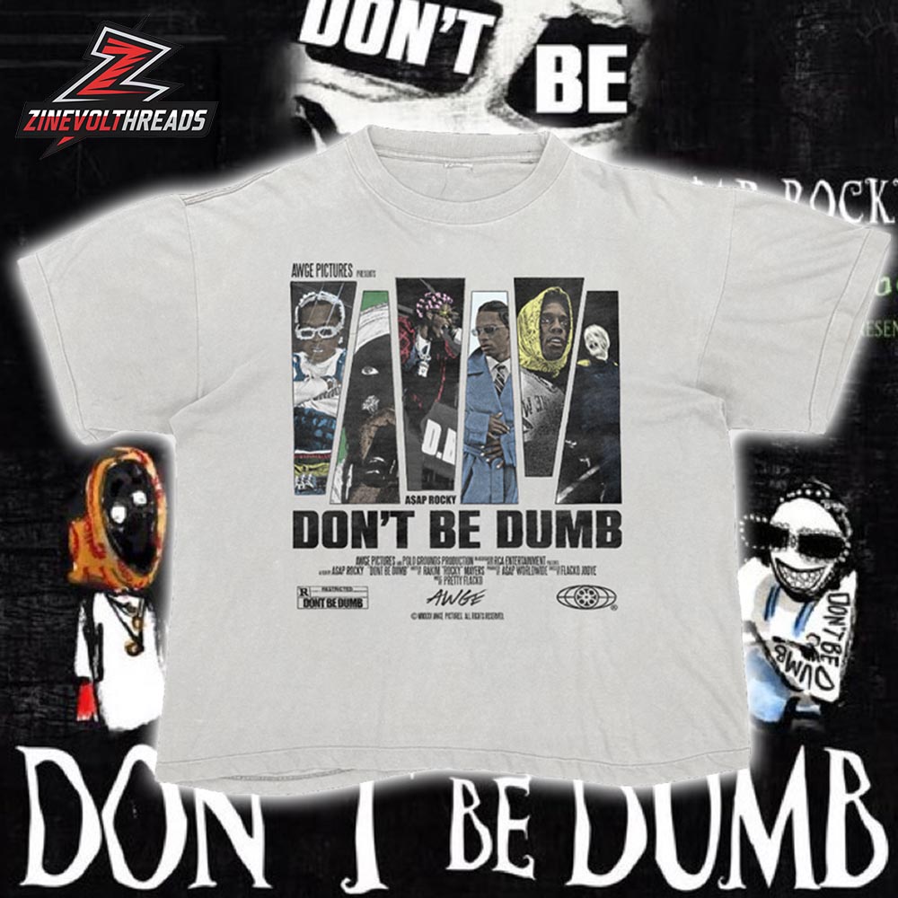 Celebrate a powerful moment in modern hip-hop with this unisex group tee inspired by Asap Rocky’s highly anticipated album Don’t Be Dumb. Featuring a cinematic, collage-style lineup across the chest, the design brings together multiple personas and moods that define the project’s artistic direction. The film-poster aesthetic, bold typography, and gritty visual tones reflect A$AP Rocky’s evolution as both a musician and cultural visionary.