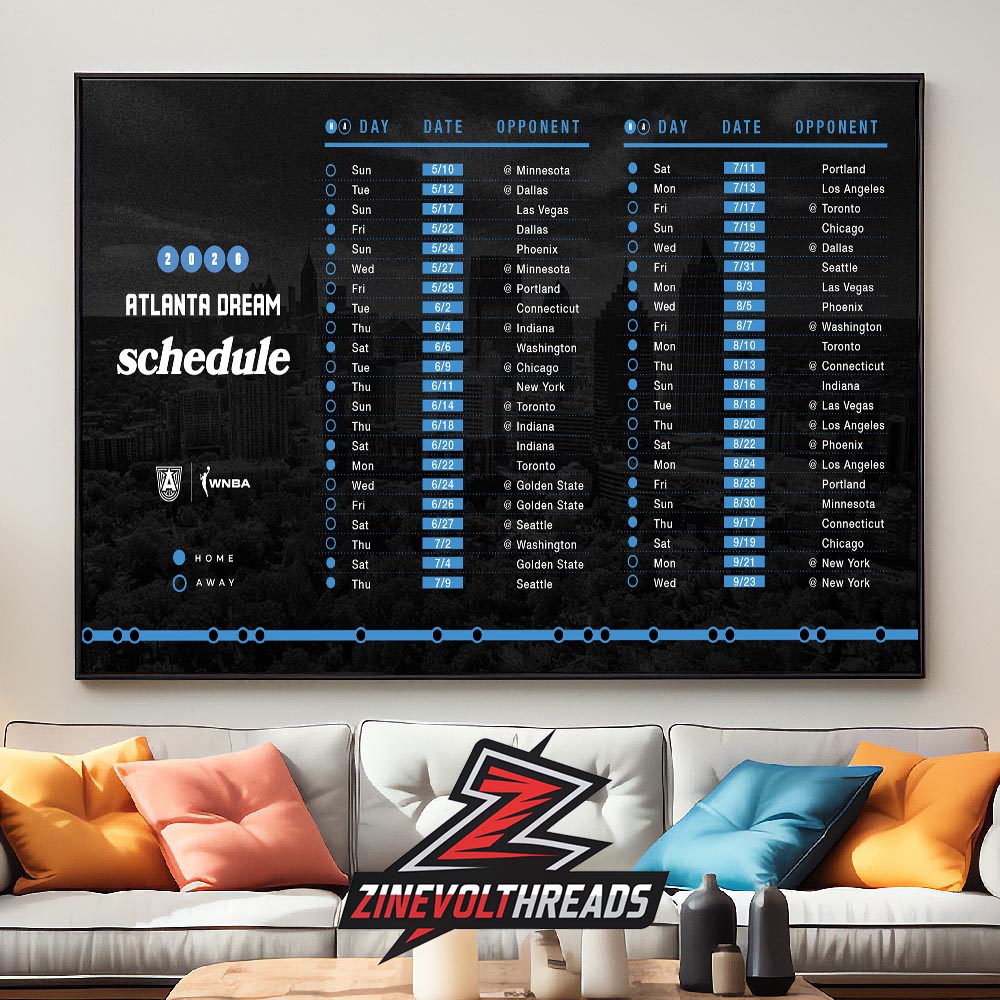 Stay on top of every game with the Atlanta Dream Official WNBA 2026 Season Schedule Home Decor Poster Canvas. Designed for passionate supporters of :contentReference[oaicite:0]{index=0}, this sleek, modern poster displays the full 2026 season schedule in a clean, easy-to-follow layout. Featuring clearly organized dates, opponents, and home/away indicators against a bold dark backdrop, it’s the perfect blend of function and team pride.