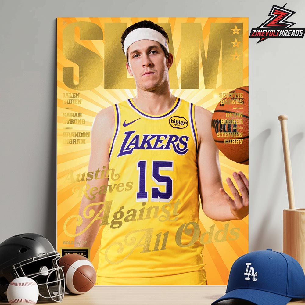 Product Highlights: Wall Art Featuring Austin Reaves Los Angeles Lakers Slam 260 Gold Metal Magazine Cover Against All Odds Home Decor Poster Canvas