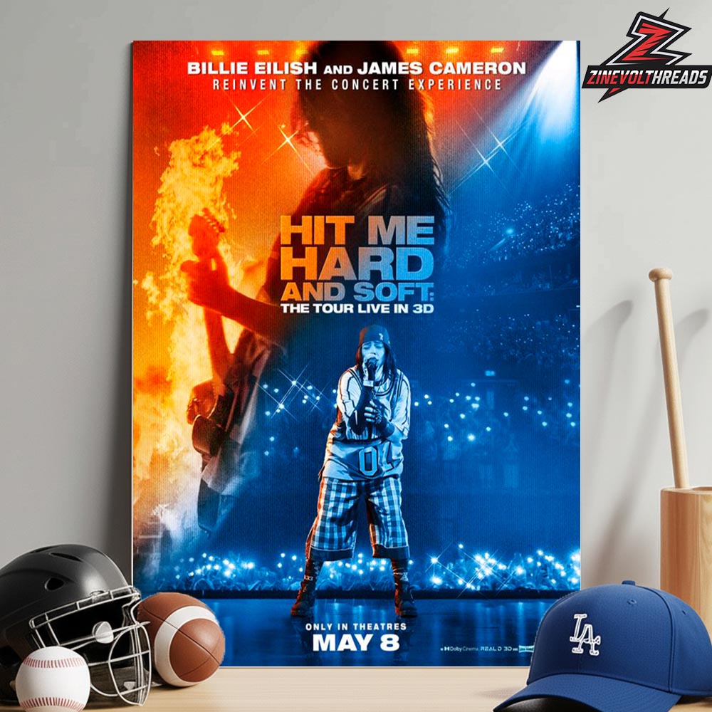 Bring the electrifying atmosphere of live performance into your space with the Billie Eilish And James Cameron Hit Me Hard And Soft The Tour Live In 3D Only In Theaters May 8th 2026 Home Decor Poster Canvas. Featuring a stunning blend of fiery stage visuals and cool-toned concert lighting, this artwork captures the emotional intensity and artistic depth of Billie Eilish’s performance. The bold “Hit Me Hard And Soft” title paired with immersive concert imagery creates a dynamic, eye-catching centerpiece for any music lover’s collection.