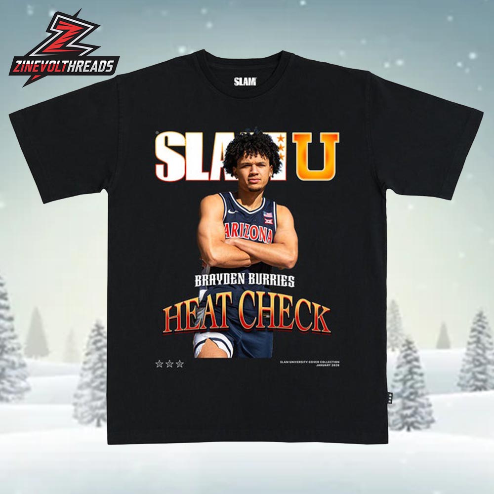 Turn heads with the Brayden Burries Arizona Wildcats Star Tee Covers SlamU 018 Heatcheck Cali Swag Unisex T-Shirt, a design that blends elite college basketball presence with undeniable California flair. Featuring Brayden Burries front and center, this tee channels a bold, composed energy that defines a true rising star. The SLAMU-inspired layout, fiery “Heat Check” typography, and clean black base create a magazine-cover aesthetic that speaks directly to modern hoops culture.