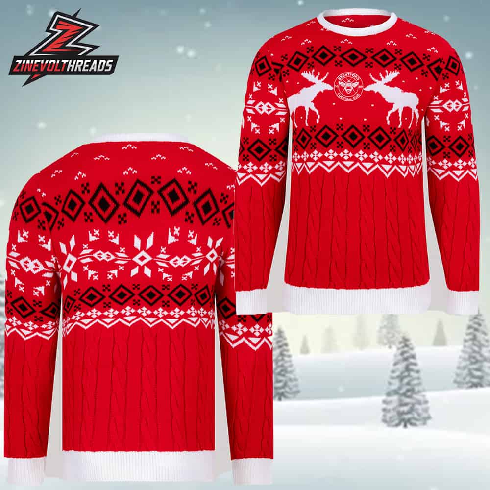 Brentford FC Christmas Reindeer Cable Knit Jumper 25 Holiday Ugly Sweater
