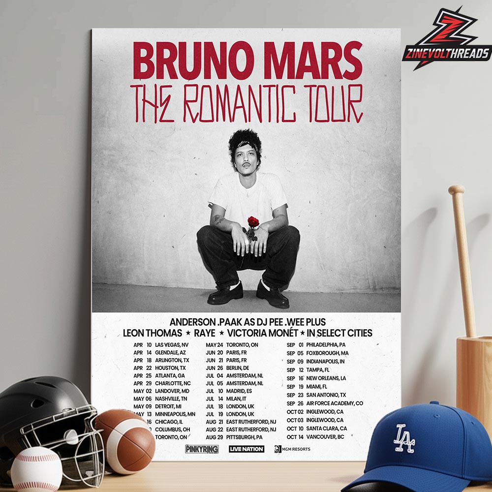 Product Highlights: Wall Art Featuring Bruno Mars Officially Announced The Romantic Tour Kick Off On April 10th 2026 Home Decor Poster Canvas