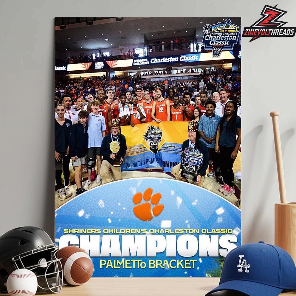 Product Highlights: Wall Art Featuring Clemson Tigers Are 2025 Shriners Children’s Charleston Classic Palmetto Bracket Champions Home Decor Poster Canvas