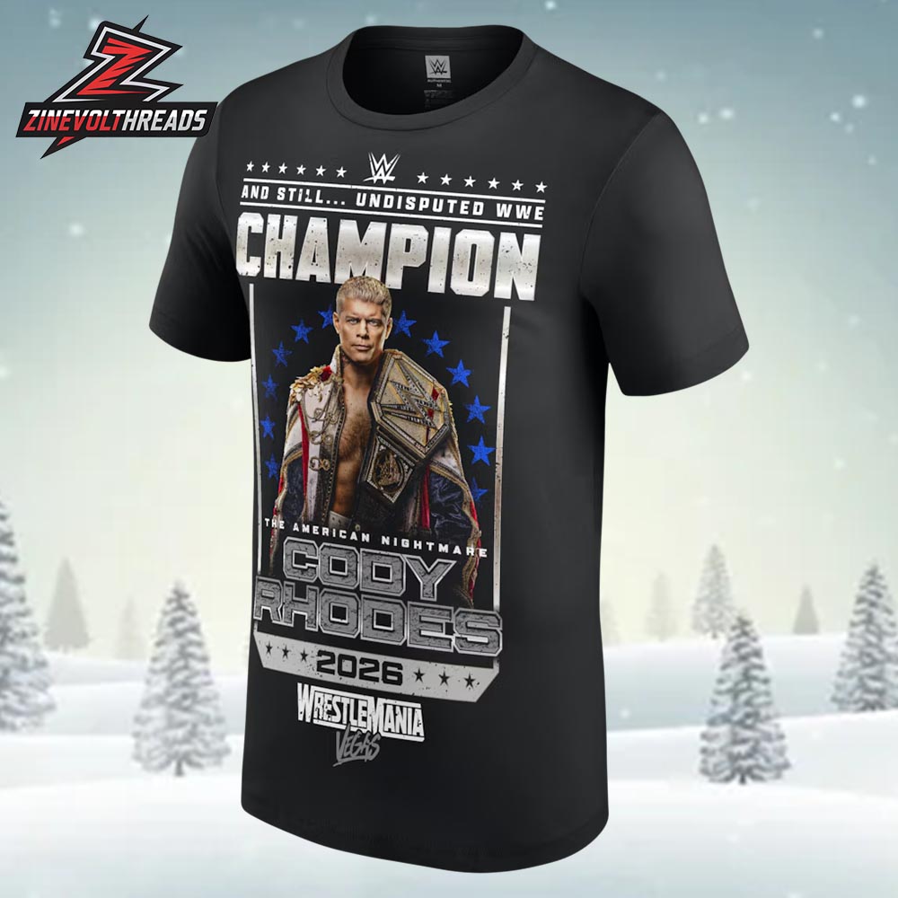 Celebrate championship glory with the Cody Rhodes The American Nightmare Undisputed WWE Champion T-Shirt, honoring his unforgettable WrestleMania 42 victory. Featuring a bold graphic of Cody Rhodes alongside the iconic championship title, this design captures the power, determination, and legacy of one of WWE’s biggest superstars. The striking layout with stars, bold typography, and “And Still… Champion” detail makes this tee a must-have for true wrestling fans.