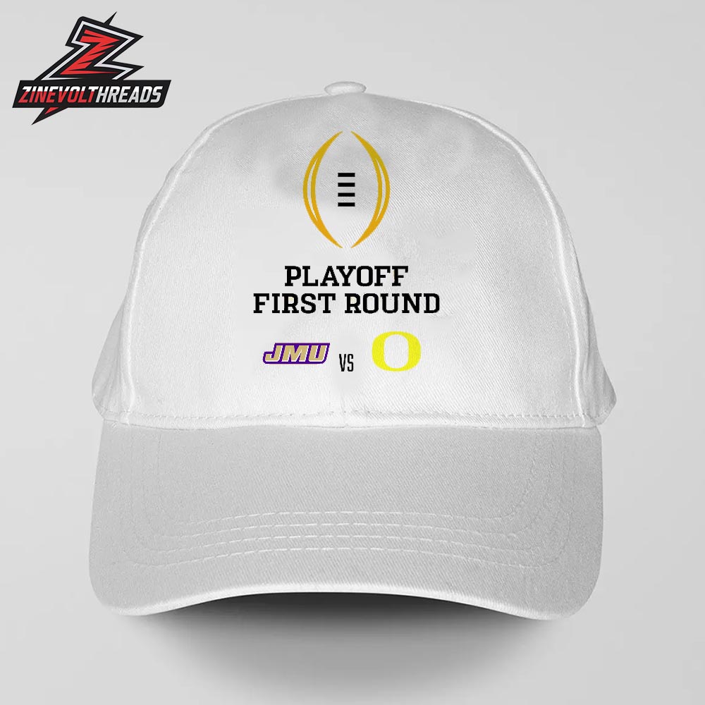 College Football Playoff Season 2025-2026 First Round James Madison Dukes Versus Oregon Ducks Snapback Classic Hat Cap Details: