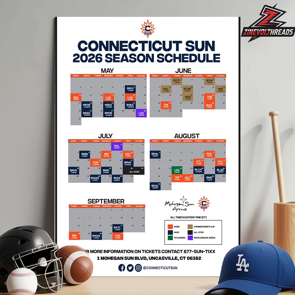Connecticut Sun Official WNBA 2026 Season Schedule Home Decor Poster Canvas