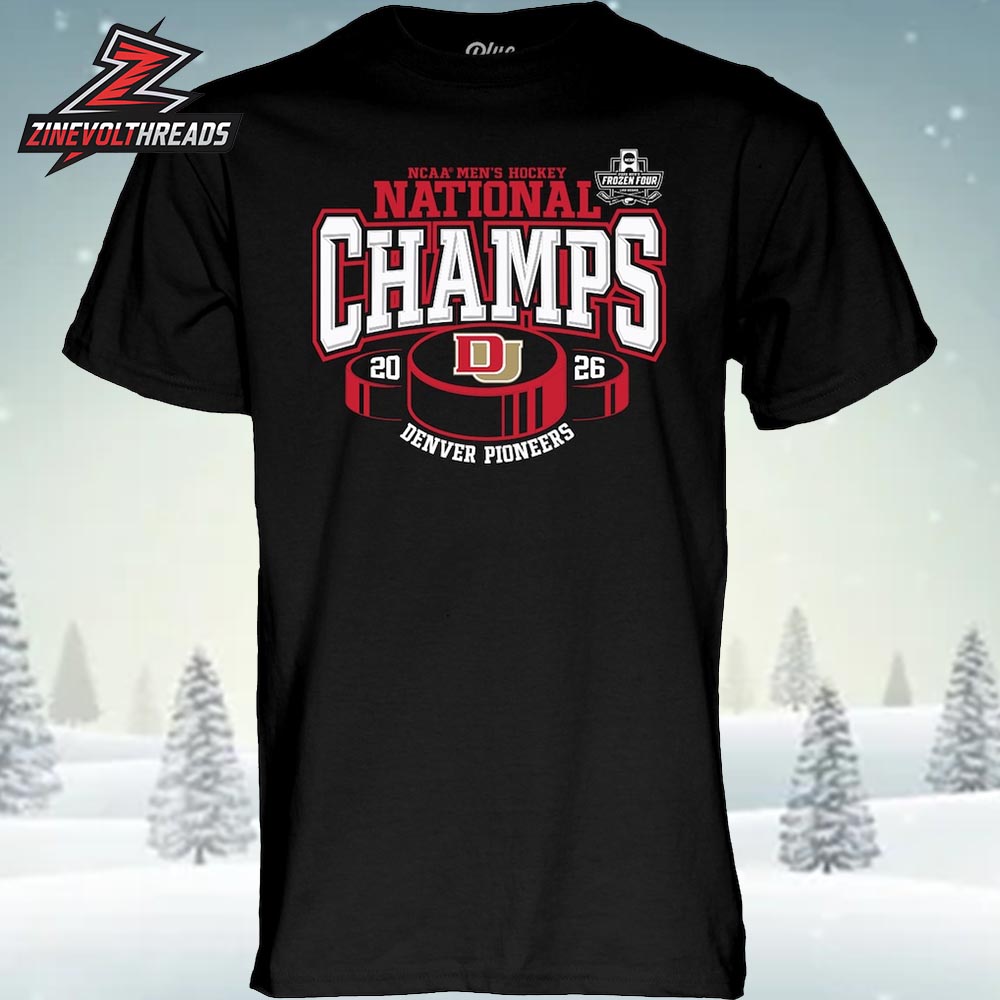 Product Spotlight: Denver Pioneers 2026 NCAA Frozen Four Men's Ice Hockey National Champions Hockey Puck Unisex T-Shirt