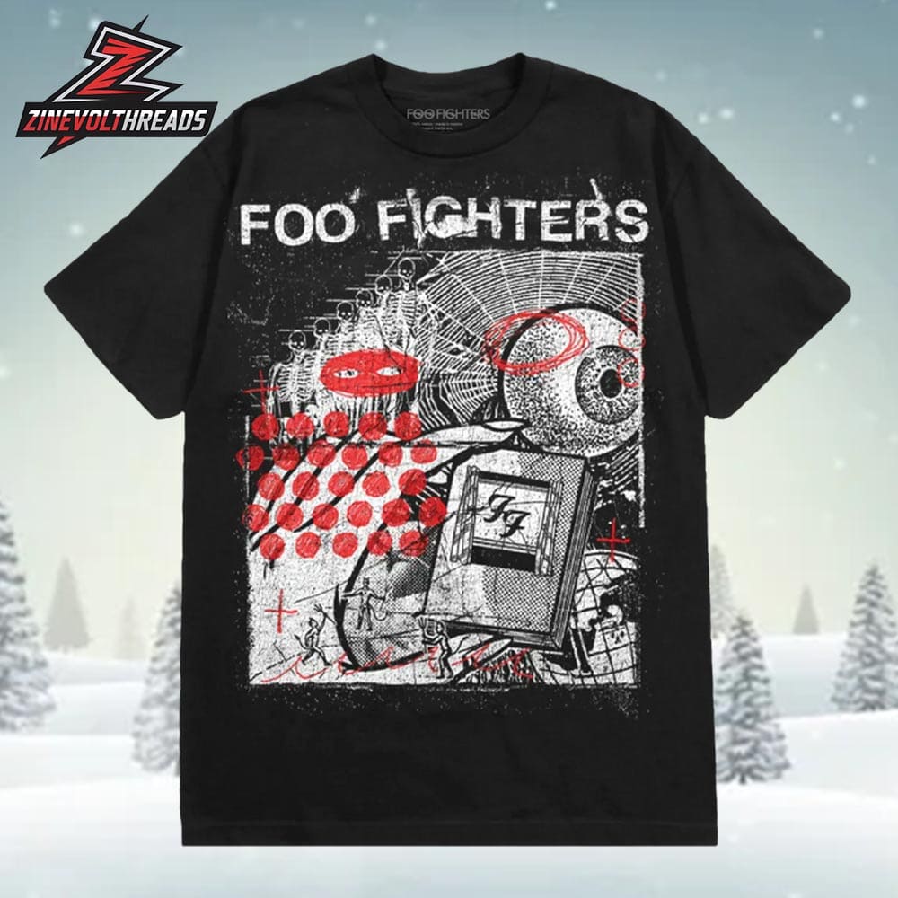 Turn up the volume on your street style with the Foo Fighters Your Favorite Toy Black Tee Unisex T-Shirt. This eye-catching design features a bold, abstract collage of gritty black, white, and red elements — from surreal mechanical imagery to distressed textures and layered graphics — capturing the raw, experimental energy that defines Foo Fighters’ sound. The striking contrast against the deep black fabric gives this tee an edgy, alternative vibe perfect for concerts, festivals, or everyday rock-inspired outfits.