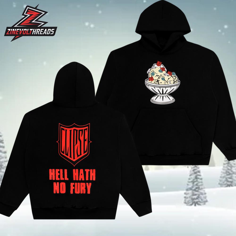 The Ice Cream X Hell Hath No Fury Hoodie Limited Edition Two Sided Unisex is designed for those who like their streetwear bold, ironic, and unapologetic. The front showcases a detailed illustrated ice cream bowl graphic that contrasts sweetness with attitude, while the phrase “Hell Hath No Fury” delivers a sharp, rebellious punch. Set against a clean black base, the artwork pops with high-contrast colors, making this hoodie instantly eye-catching and perfect for statement-driven outfits.