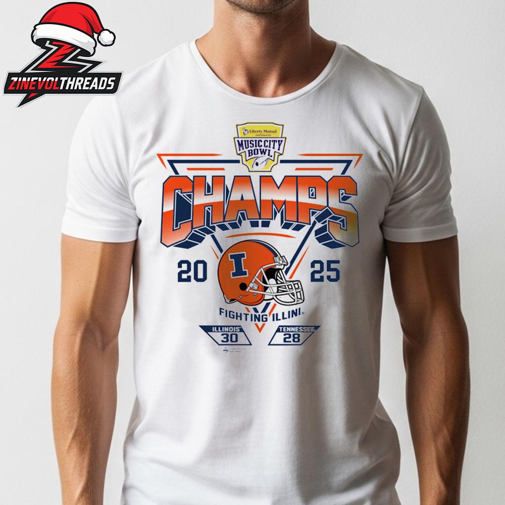 Product Spotlight: Illinois Fighting Illini 2025 Liberty Mutual Music City Bowl Tee Score Champions Unisex T-Shirt