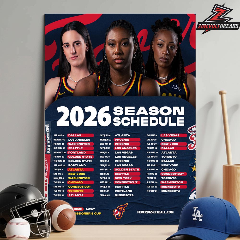 Get ready for every tip-off with the Indiana Fever Official WNBA 2026 Season Schedule Home Decor Poster Canvas. Created for dedicated supporters of Indiana Fever, this striking poster features the complete 2026 season schedule in a bold, easy-to-follow layout. Showcasing key matchups, home and away games, and official team branding alongside featured player imagery, it captures the energy and anticipation of another exciting WNBA season.