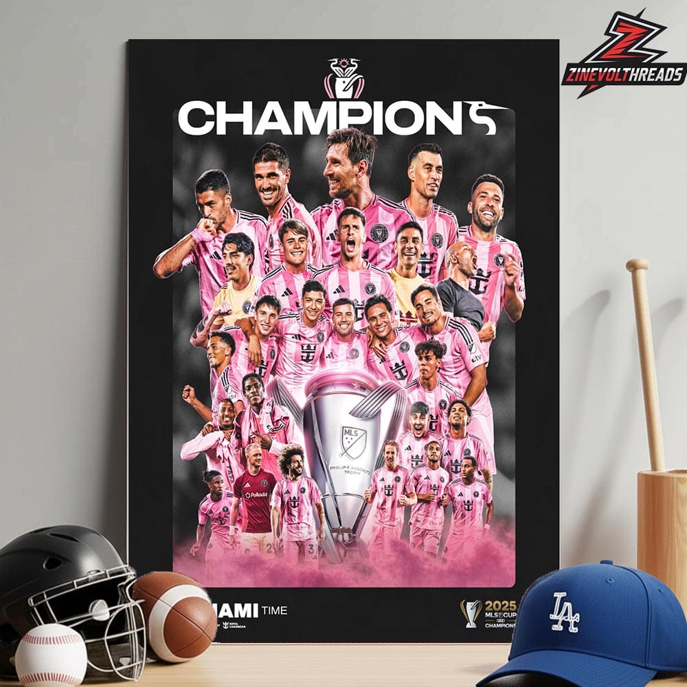 Product Highlights: Wall Art Featuring Inter Miami Is The 2025 MLS Cup Champions It's Miami Time Home Decor Poster Canvas
