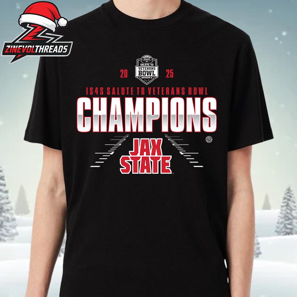 Product Spotlight: Jax State Gamecocks 2025 NCAA Football IS4S Salute To Veterans Bowl Champions Unisex T-Shirt