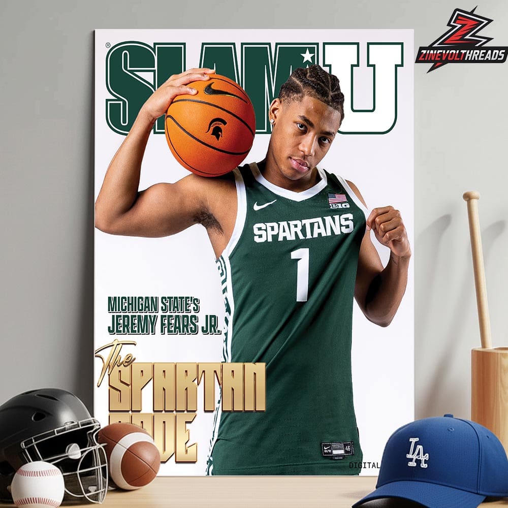 Bring elite college basketball energy into your space with the Jeremy Fears Jr Michigan State Spartans On Slam University Cover Magazine Spartan Code Home Decor Poster Canvas. Inspired by the bold aesthetic of SLAM-style covers, this striking design features Michigan State standout Jeremy Fears Jr. holding the ball with confidence, representing the next generation of Spartans excellence. The clean layout, powerful pose, and standout βSpartan Codeβ typography capture the intensity, leadership, and pride of Michigan State basketball.