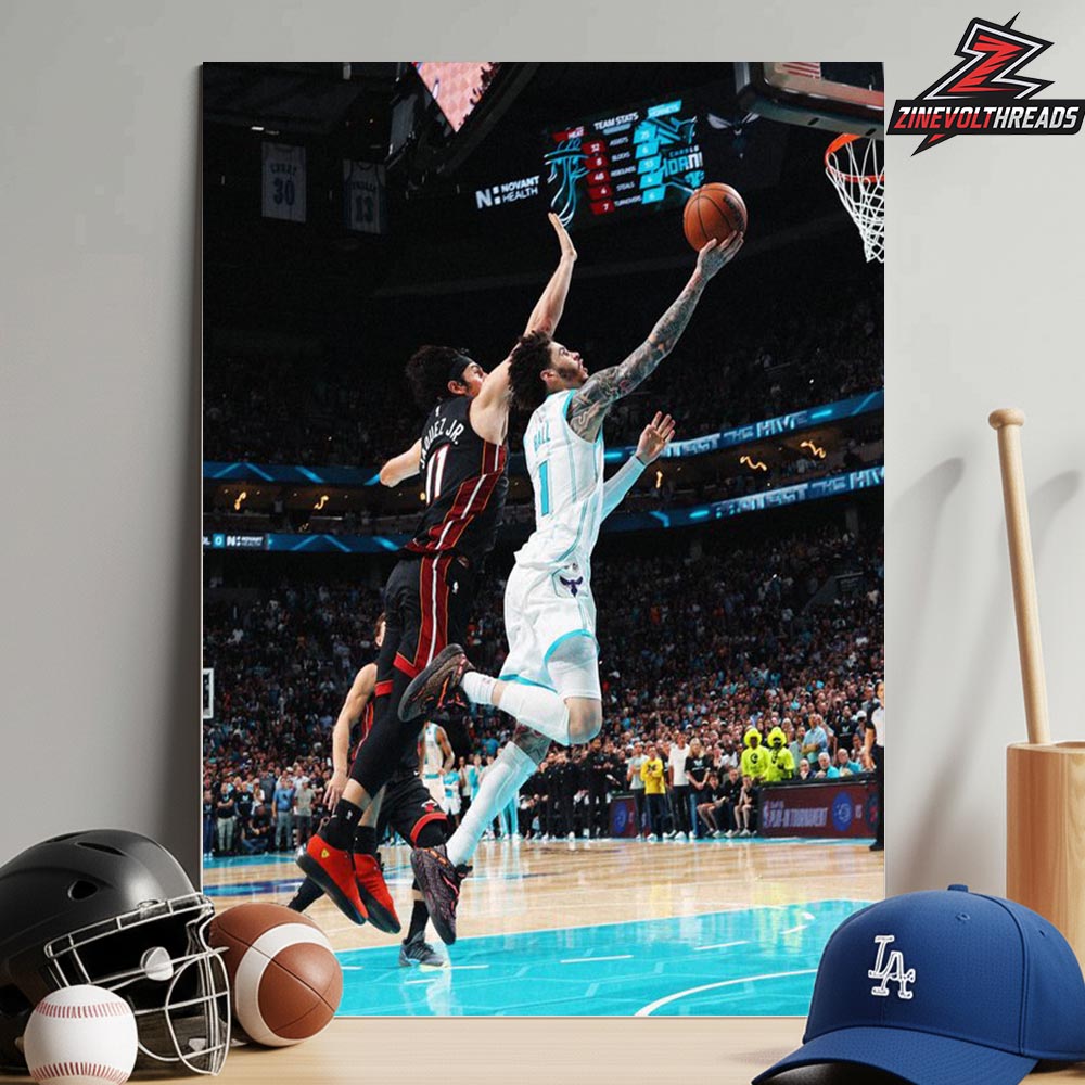 Lamelo Ball Charlotte Hornets Go Ahead Bucket Capture Moment Get The Playoffs Against Heat NBA 2025-26 Home Decor Poster Canvas