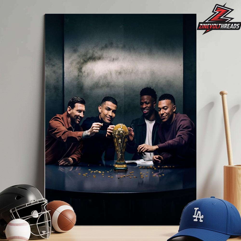Product Highlights: Wall Art Featuring Messi Ronaldo Vini Jr Mbappe New Line Up Lego World Cup 2026 Trophy Inspired By The Four Icons Home Decor Poster Canvas