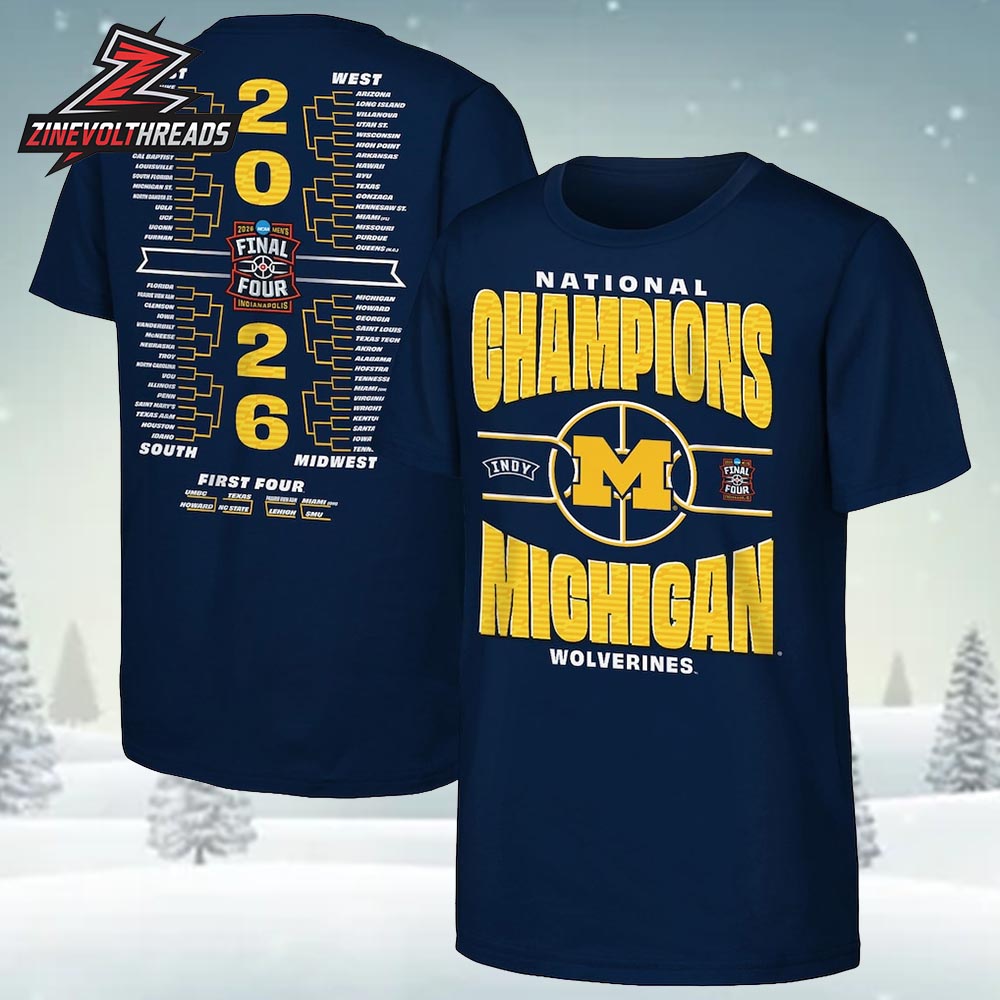 Michigan Wolverines 2026 Champions – Full Bracket Victory Tee