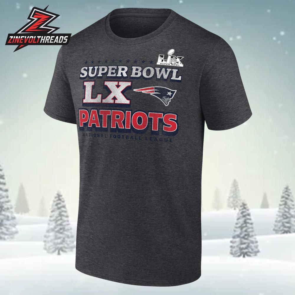 Gear up for football’s biggest showdown with the New England Patriots Super Bowl LX Battle Prep Unisex T-Shirt. Built around bold Super Bowl LX typography, the Patriots logo, and classic red-white-blue accents, this design captures the intensity and focus of a team preparing for the ultimate test. The strong, no-nonsense layout on a dark heather base delivers a rugged, game-day look that reflects championship mentality and playoff toughness.
