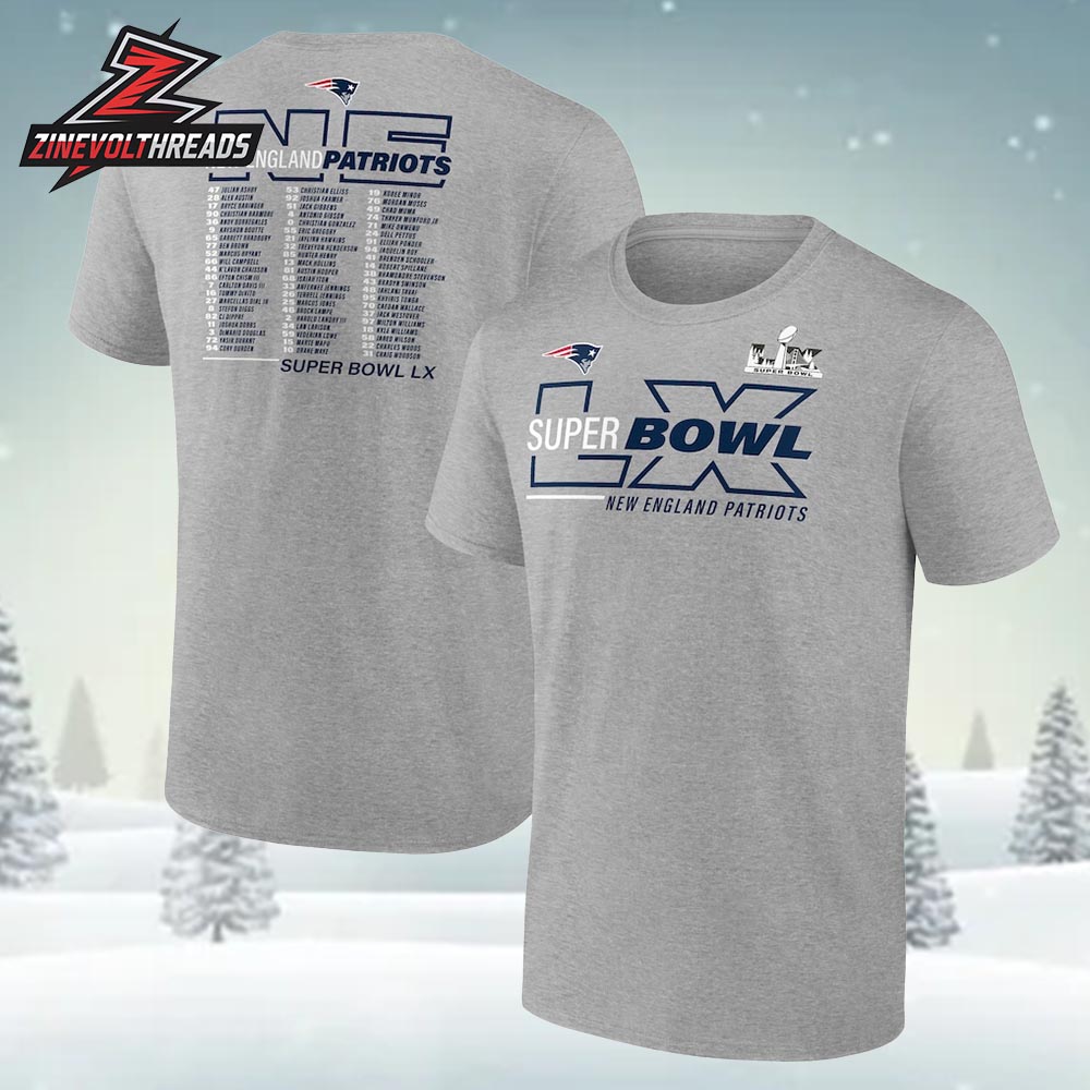 Product Spotlight: New England Patriots Super Bowl LX Roster Two Sided Unisex T-Shirt
