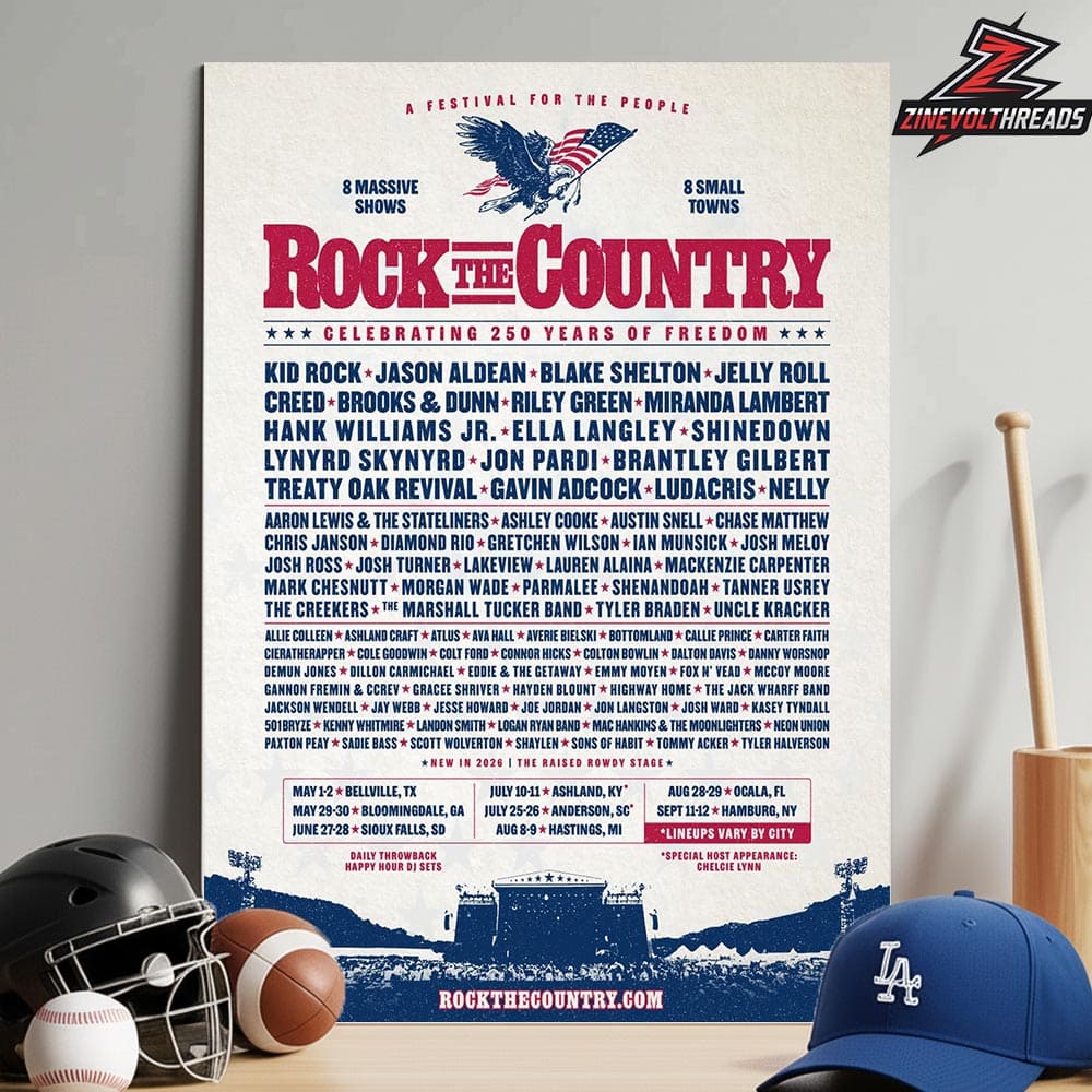 Rock The Country 2026 Celebrating 250 Years Of Freedom Line Up Poster For 8 Massive Shows Home Decor Poster Canvas