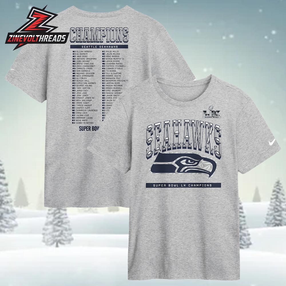 Seattle Seahawks Nike Super Bowl LX Champions Ice Classic Roster Two Sided Unisex T-Shirt