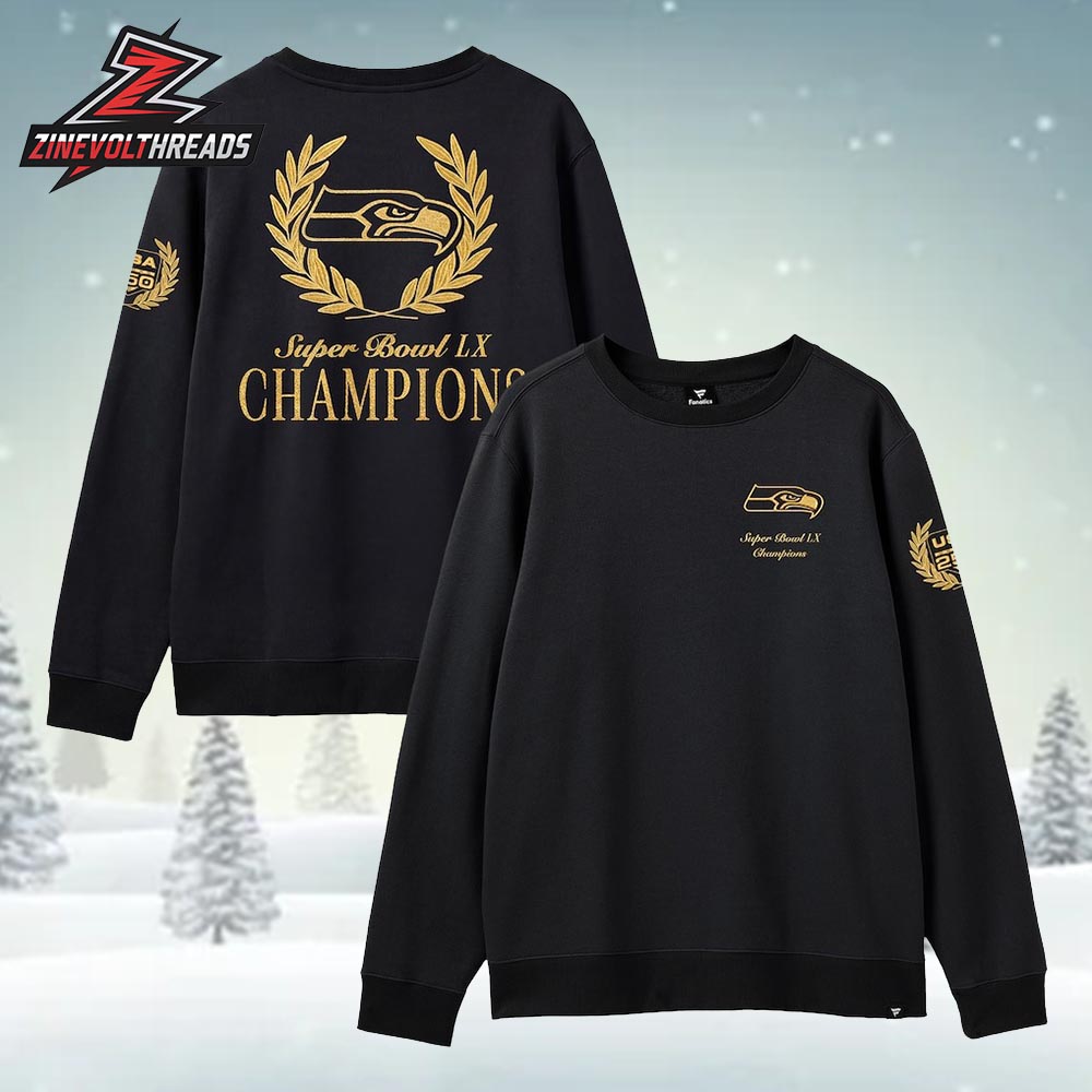 Made from soft, comfortable fabric with a relaxed unisex fit, this Seahawks Super Bowl LX Champions sweatshirt delivers all-day comfort whether you’re headed to the stadium, watching the game at home, or out with friends. It pairs effortlessly with jeans, joggers, or your favorite Seahawks gear for a look that’s both spirited and stylish. A great gift for fans who appreciate elevated design, this tee honors Seattle’s historic victory with flair and durability. NFL, Seattle Seahawks, Super Bowl