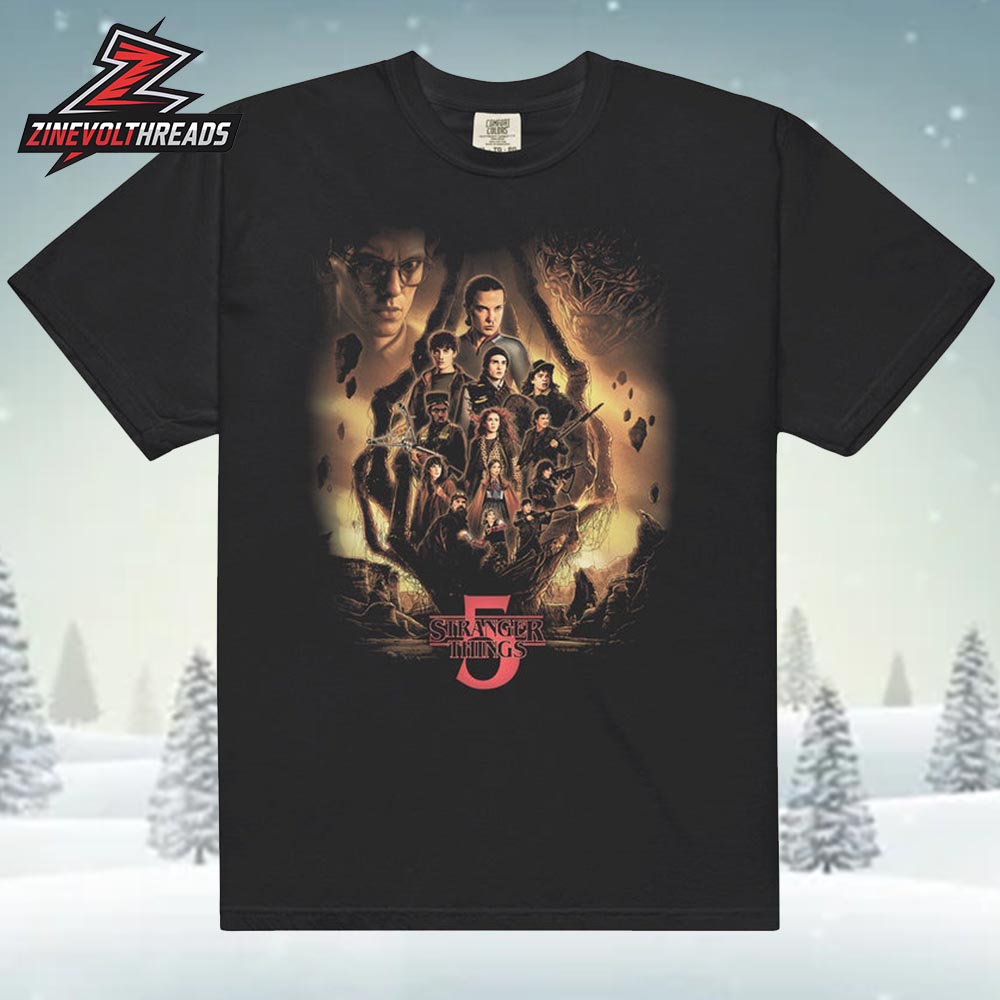 Printed on a premium Comfort Colors unisex tee, this shirt offers a soft, lived-in feel with durable, high-quality print that preserves rich colors and fine details. Perfect for collectors, longtime fans, or anyone who appreciates iconic TV art, it’s ideal for casual wear, conventions, or displaying your love for the Stranger Things legacy. Whether you followed every season or are celebrating the grand finale, this tee transforms legendary storytelling into timeless wearable art. Stranger Things