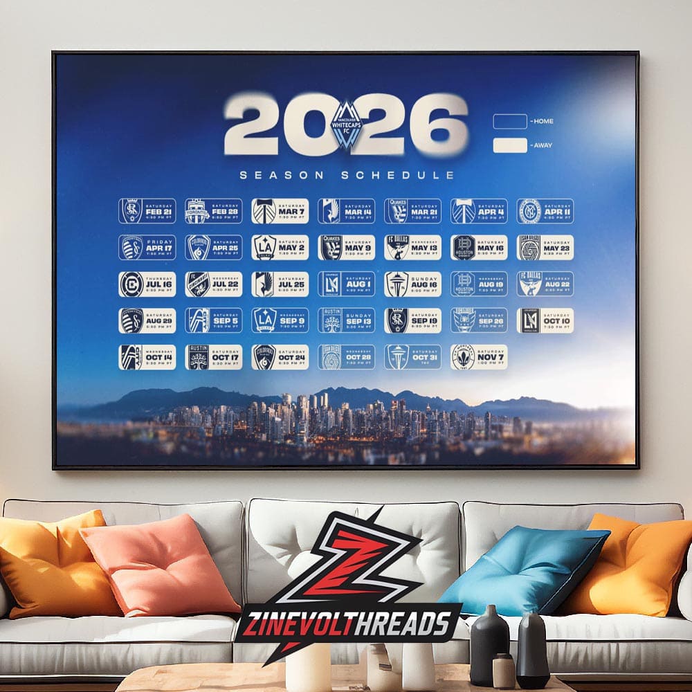 Printed on premium-quality canvas, this Whitecaps 2026 schedule poster delivers sharp detail, vibrant color, and long-lasting durability—perfect for framing or displaying in your living room, office, fan cave, or game-day setup. Whether you’re planning match-day outings, organizing watch parties, or simply showcasing your loyalty to Vancouver’s MLS club, this canvas is a must-have centerpiece for every Whitecaps supporter. MLS, Vancouver Whitecaps FC